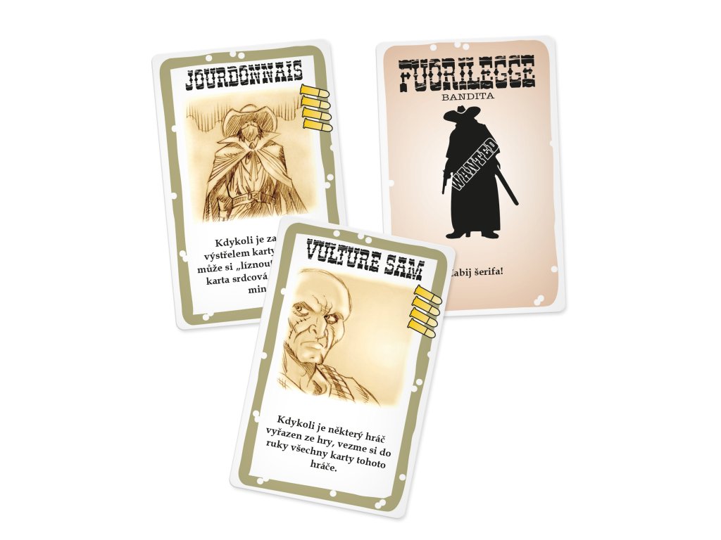 Dobrodružná karetní hra, která vás dostane! Bandité honí šerifa. Šerif pálí po banditech. Odpadlík kuje pikle chvíli tam a zase tady. Odhalíš kdo je kdo?Doplňkové parametry