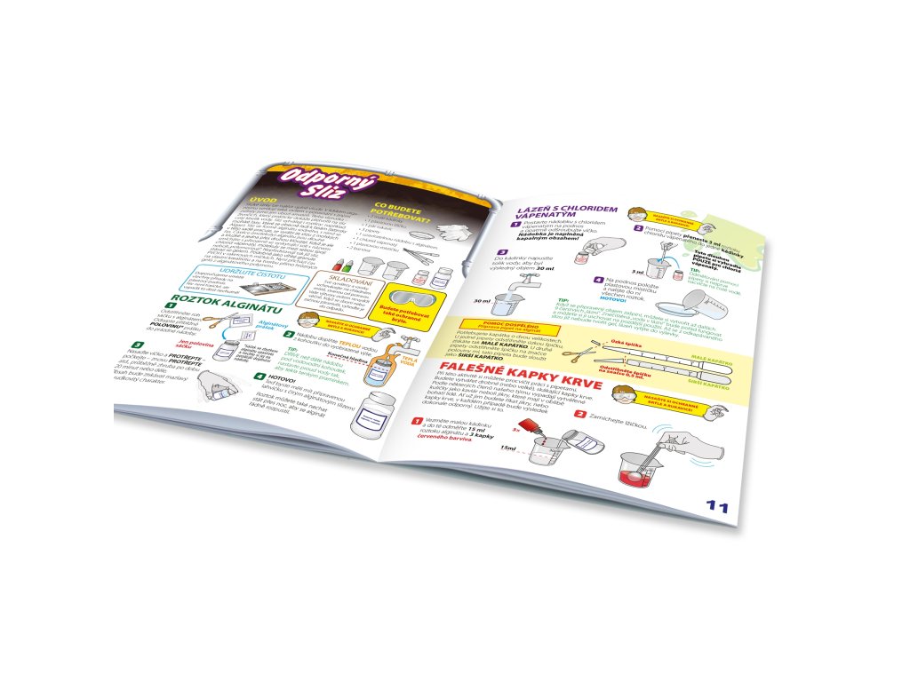 Chemická laboratoř je určena pro děti od osmi let. Sada obsahuje množství zábavných experimentů, které děti nadchnou a při nichž se také dovědí zajímavé informace. Mohou si vyrobit raketové kuličky, vtipný sliz či sopku s lávovou pěnou.Doplňkové parametry