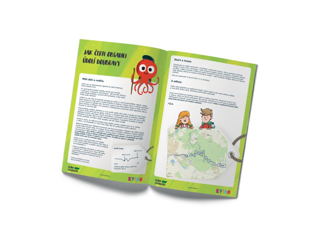 Kvídovy Zážitkové cesty po České republice zpestří váš rodinný výlet a putování přírodou. Na děti od 4 let cestou čeká celkem 10 úkolů, které jsou ukryté na různých místech v přírodě.Doplňkové parametry