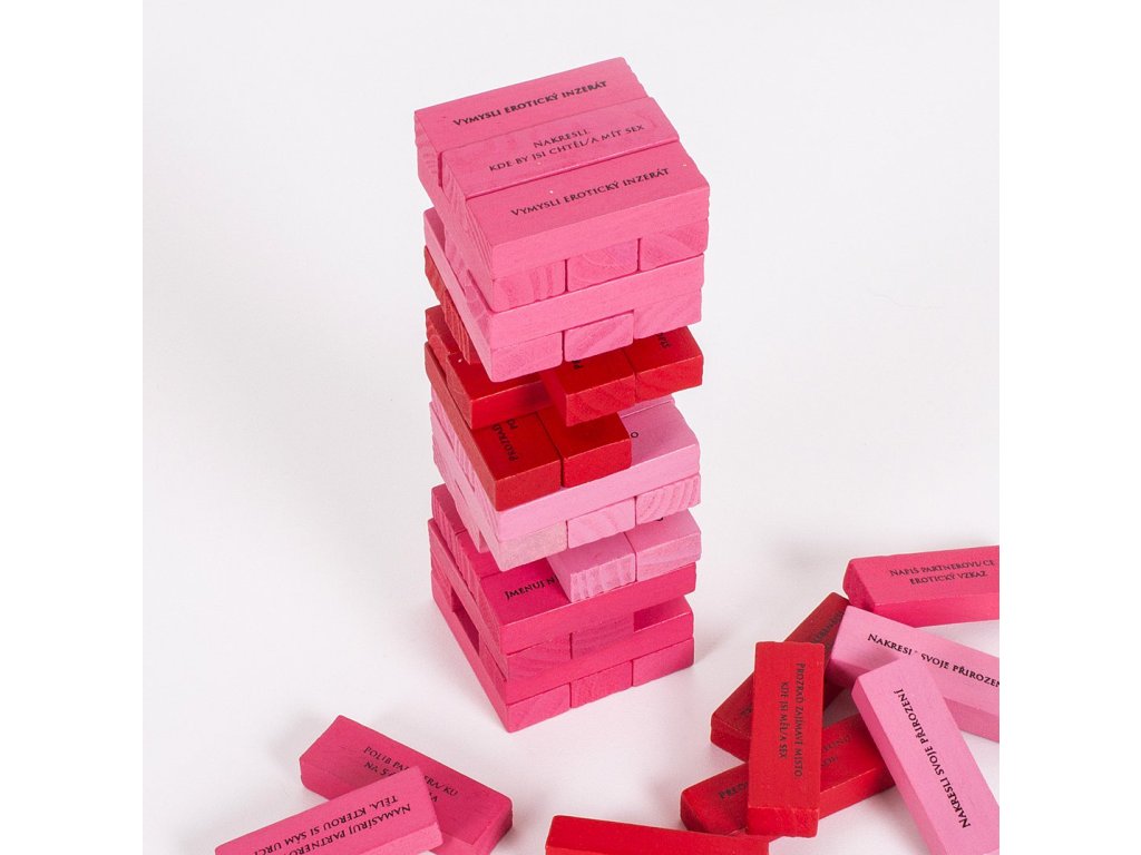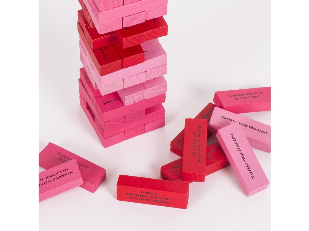 Hra, která je ideální pro dvojice nebo na odvážnou párty. Stavění věže dostane nový rozměr! Na dřevěných kamenech se skrývají mírně lechtivé úkoly, které musí hráči ihned splnit, nebo dát fant, či vypít oblíbený drink.Doplňkové parametry