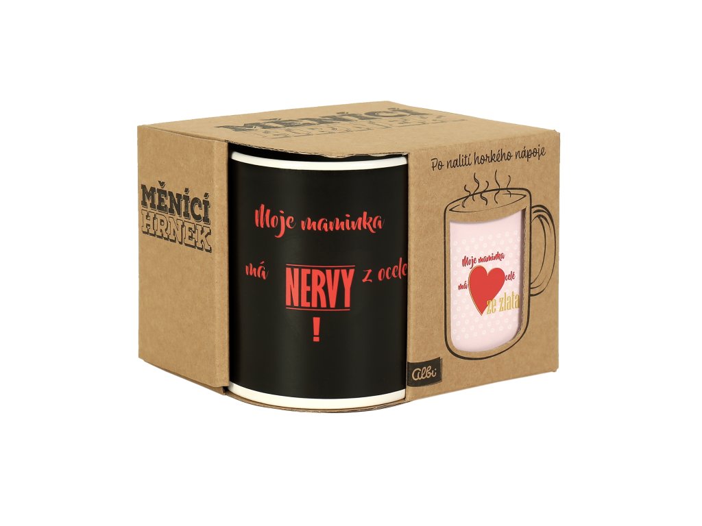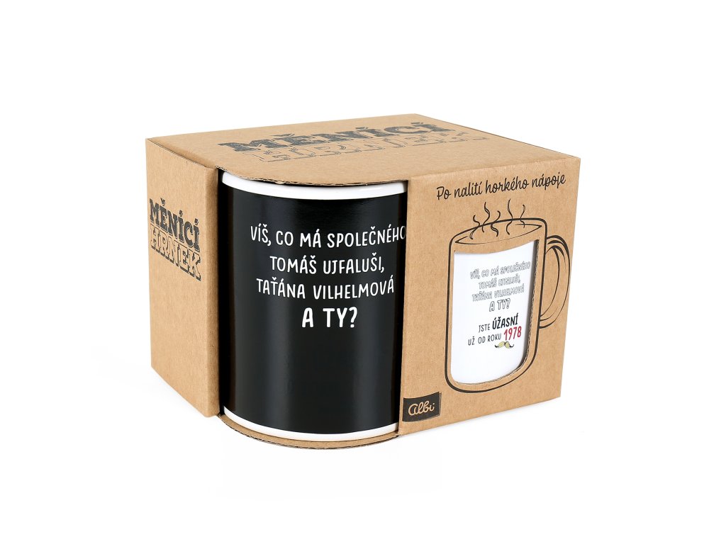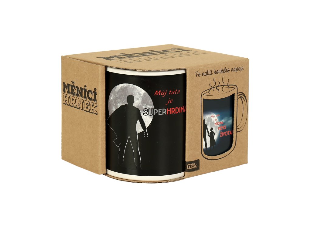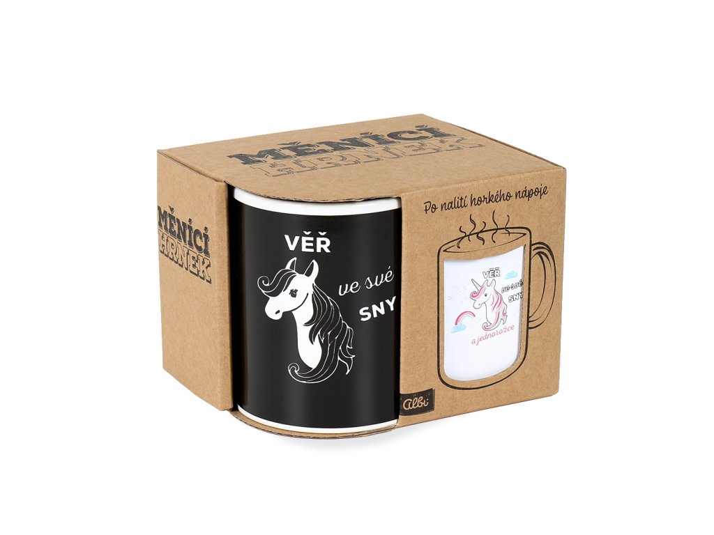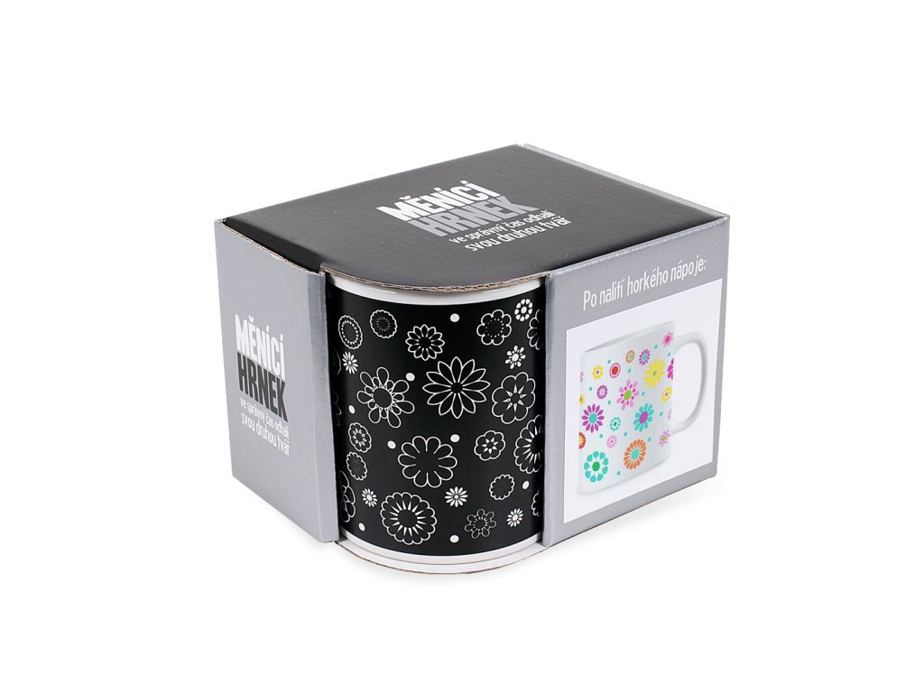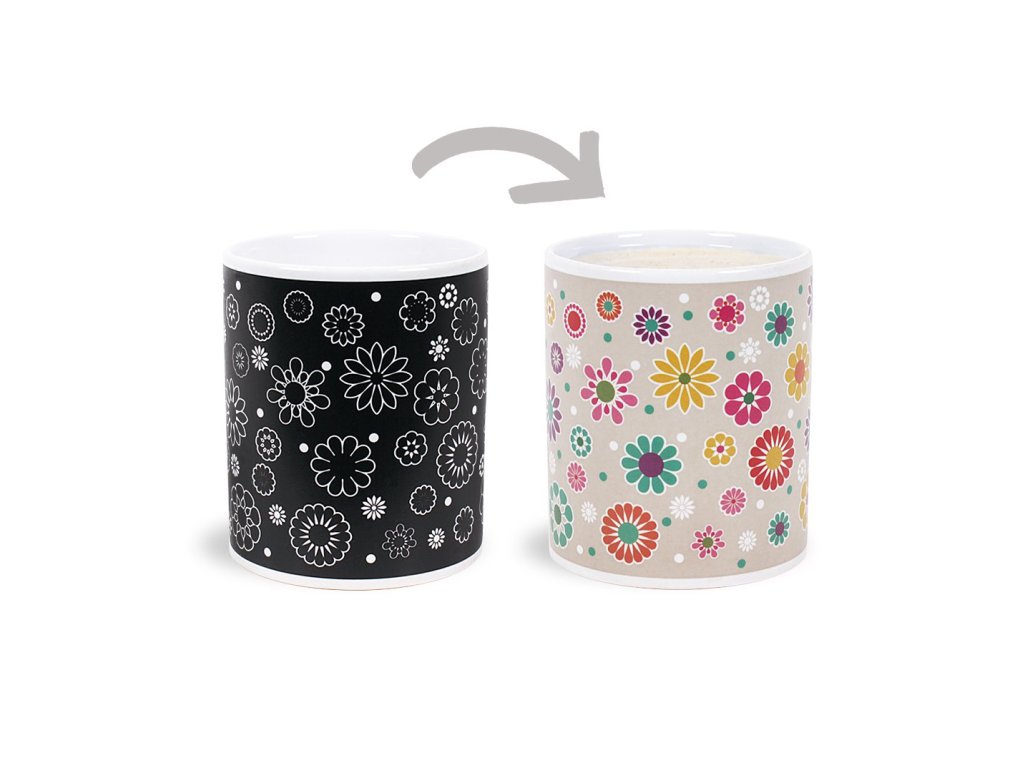 Zdánlivě tradiční hrnky jsou výjimečné svými motivy, které se mění po nalití horkého nápoje. Během chvíle zahřátý hrnek vtipně změní význam textu či odhalí skrytý obrázek, aby po vychladnutí opět skrýval svou identitu.Doplňkové parametry