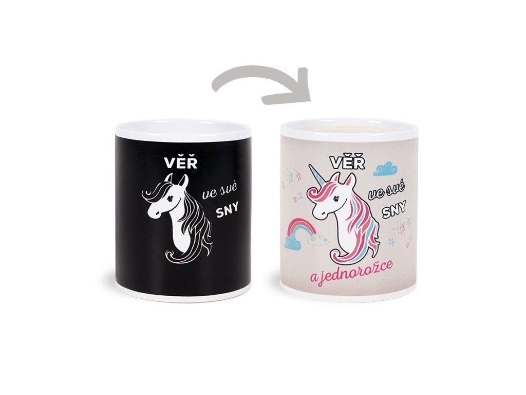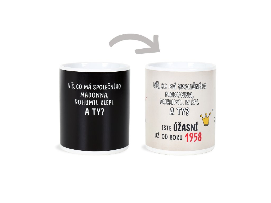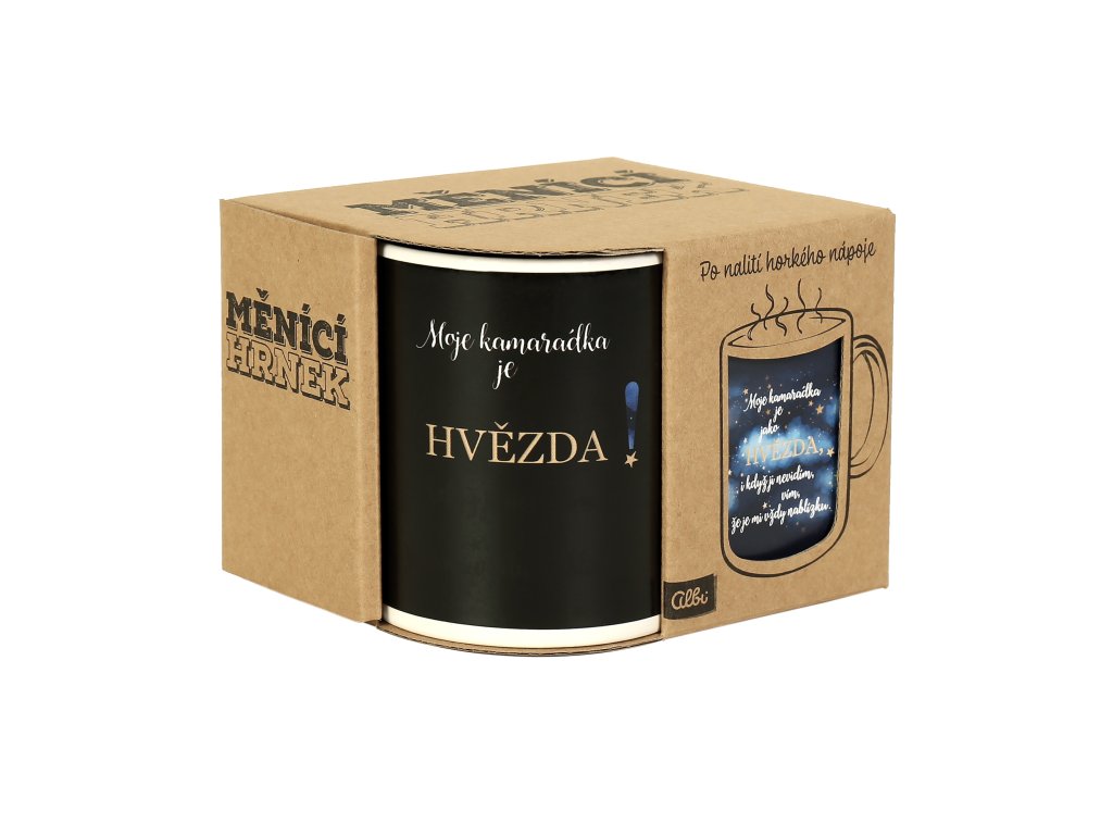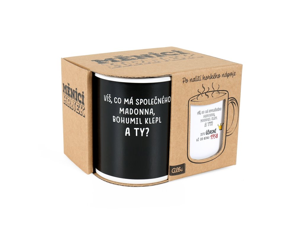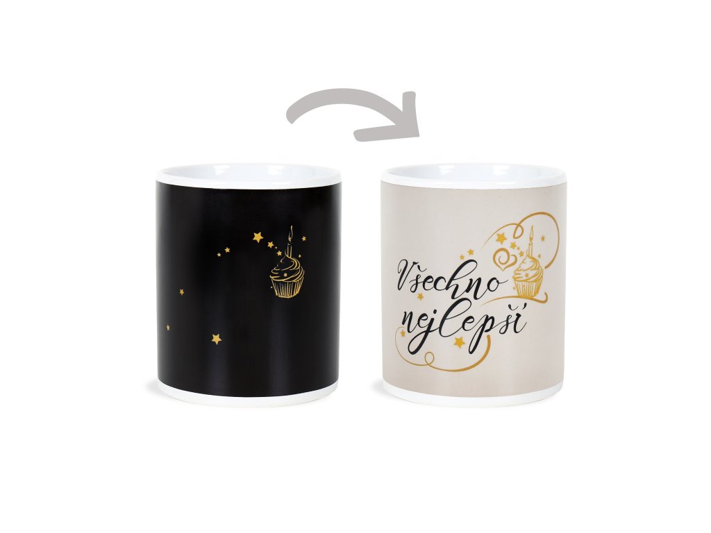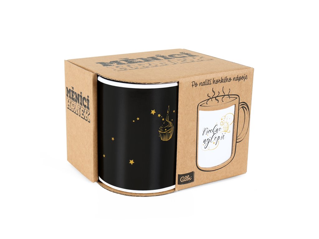Zdánlivě tradiční hrnky jsou výjimečné svými motivy, které se mění po nalití horkého nápoje. Během chvíle zahřátý hrnek vtipně změní význam textu či odhalí skrytý obrázek, aby po vychladnutí opět skrýval svou identitu.Doplňkové parametry