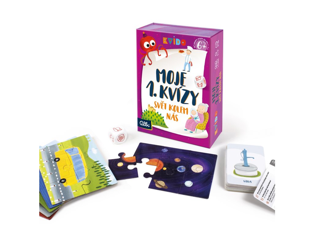 Moje první kvízy je 50 kartiček s 300 otázkami rozdělenými podle věku dětí, aby mohli hrát společně i starší sourozenci. Za správné odpovědi získávají děti 1 dílek puzzle a vyhrává ten, kdo jako první složí obrázek.Doplňkové parametry