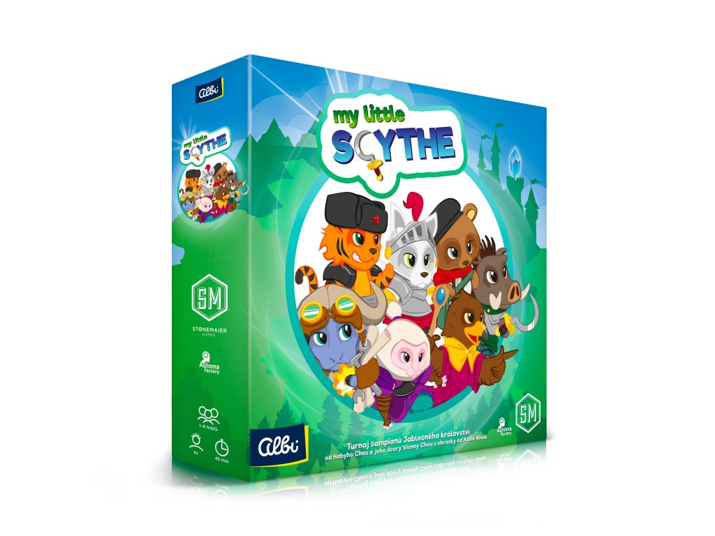 My Little Scythe je kompetitivní rodinná hra, ve které budou hráči moci se svými dvěma figurkami zvířecích dobrodruhů zažít vzrušující příhody v kouzelné zemi, v Jablečném království. Hráči se střídají ve hře a soutěží o to, kdo jako první získá čtyři poháry za úspěch v některé z osmi soutěžních kategorií.Doplňkové parametry