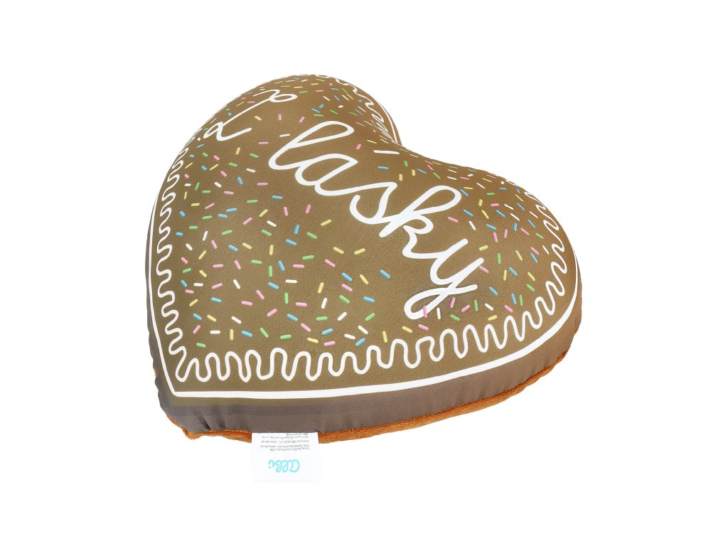 Pohodlný polštář ve tvaru perníkového srdce je milým dárkem pro ženu.Doplňkové parametry