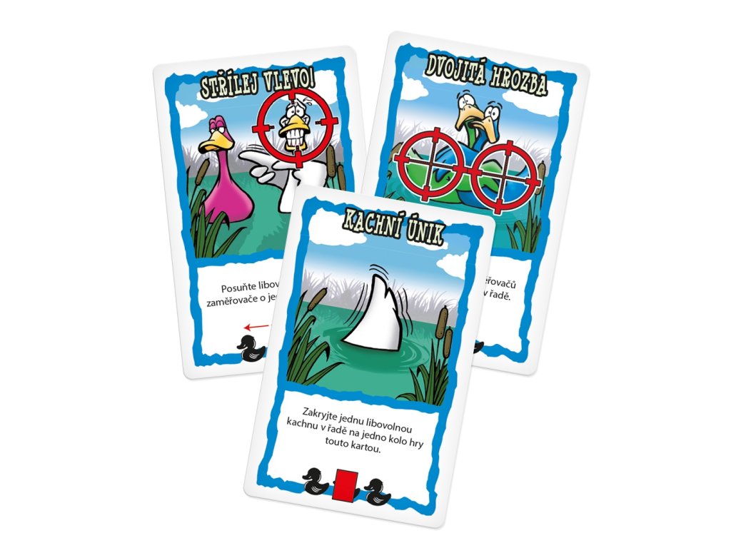 Zábavná karetní hra. Cílem je zachránit svoje kachny a zařiďte, aby žádná ze soupeřových kachen nepřežila. Poslední kachna ve hře vítězí.Doplňkové parametry