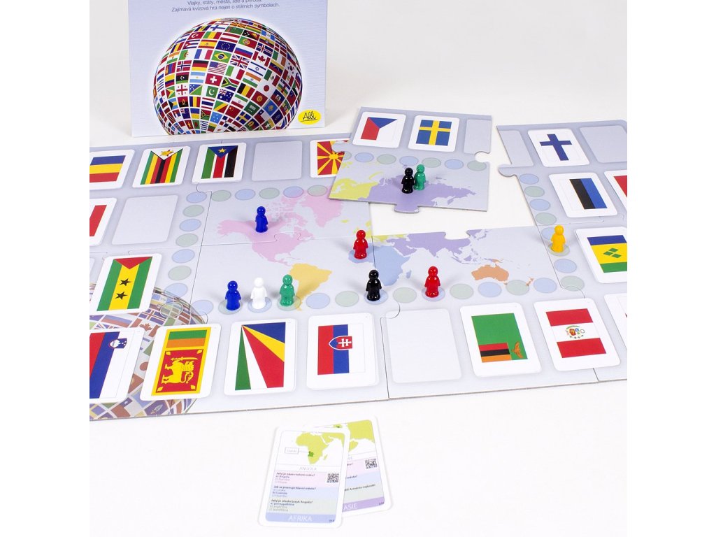 Společenská kvízová hra Vlajky vás provede celým světem. Čekají vás státní symboly, vlajky, státy, města, lidé, příroda a spoustu dalších zajímavostí v celkem 585 otázkách. Že moc vlajek neznáte? Vůbec nevadí! I tak můžete vyhrát - možnosti odpovědi jsou u každé karty.Doplňkové parametry
