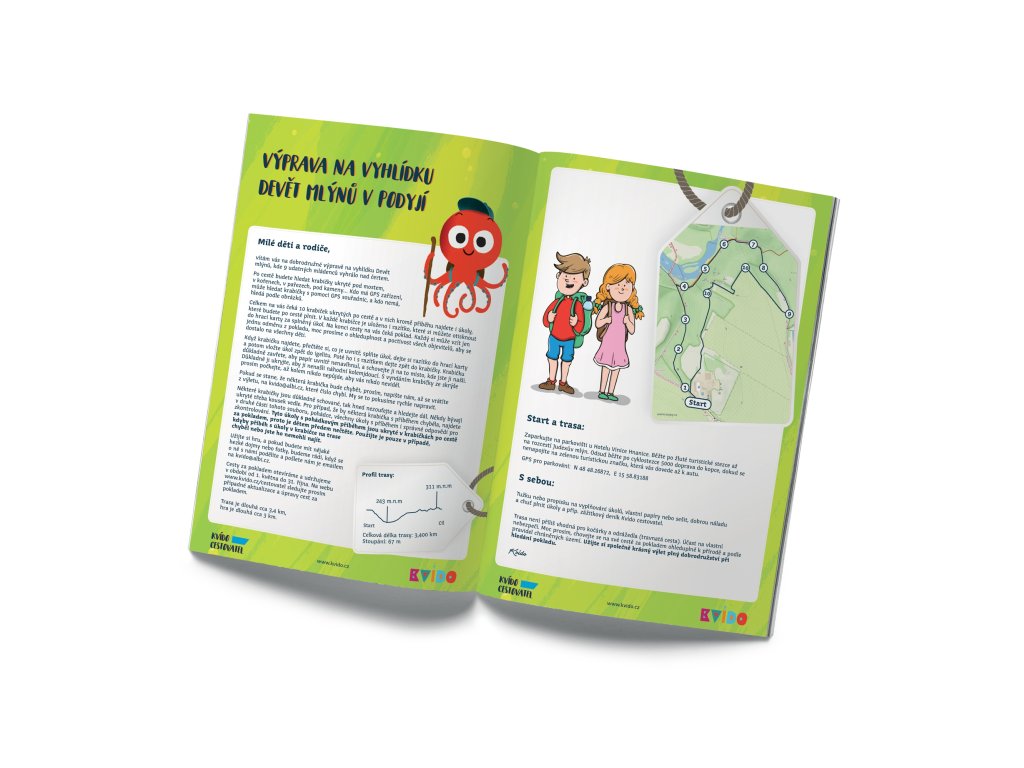 Kvídovy Zážitkové cesty po České republice zpestří váš rodinný výlet a putování přírodou. Na děti od 4 let cestou čeká celkem 10 úkolů, které jsou ukryté na různých místech v přírodě.Doplňkové parametry